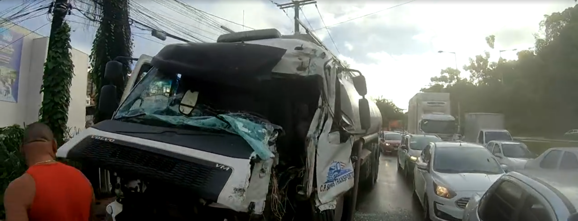 Um acidente envolvendo um caminhão e um ônibus do transporte coletivo foi registrado na manhã desta quinta-feira (25) em Salvador. A colisão ocorreu próximo a uma sinaleira no Largo do Retiro, sentido Rótula do Abacaxi.