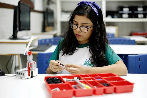 A escola SESI, presente em mais de 450 unidades, oferece ensino baseado em metodologias inovadoras, como o modelo STEAM — que integra ciências, tecnologia, engenharia, artes e matemática — e em um sistema autoral de ensino, que estimula o protagonismo estudantil e o aprendizado prático.