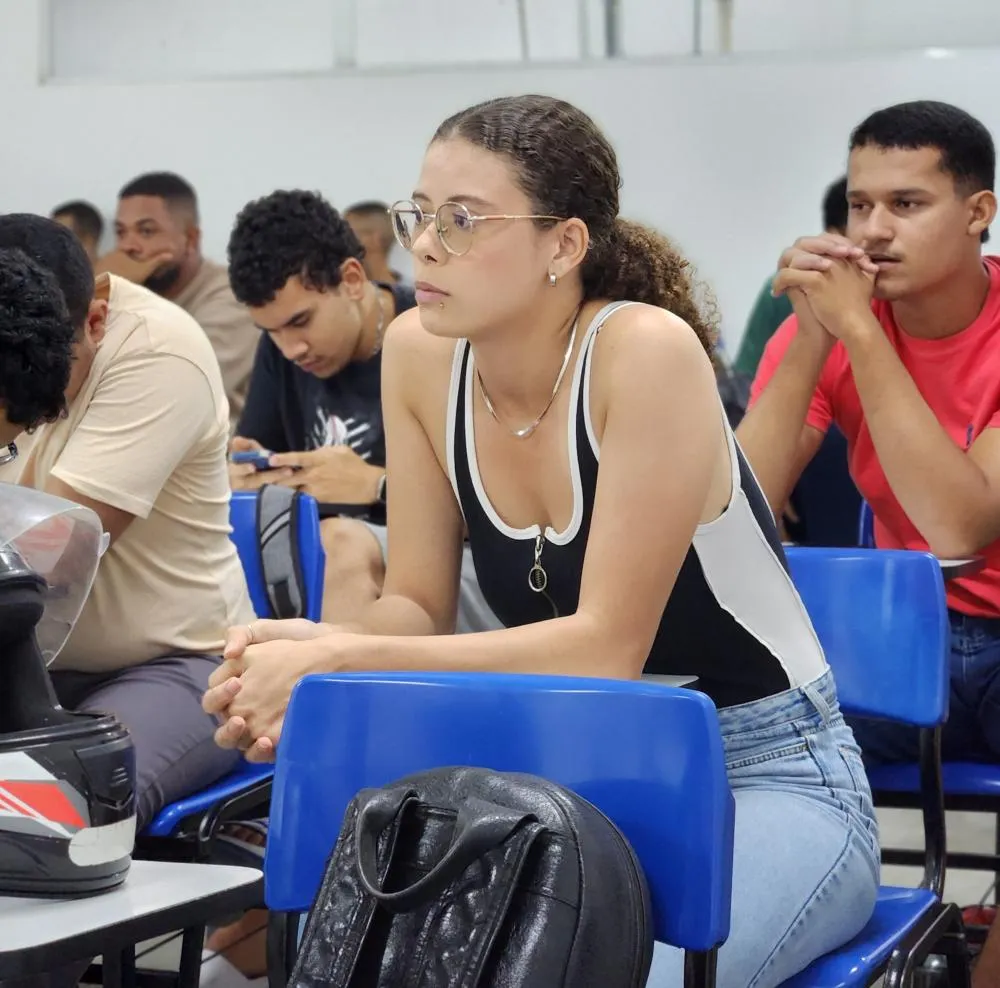 Durante o bate-papo, os estudantes tiveram a oportunidade de dialogar diretamente com a convidada, aprofundando discussões sobre empreendedorismo, inovação e os caminhos para transformar ideias em iniciativas concretas.